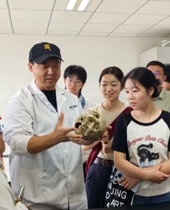 张敬雷老师为同学们演示如何科学地鉴别人骨的性别