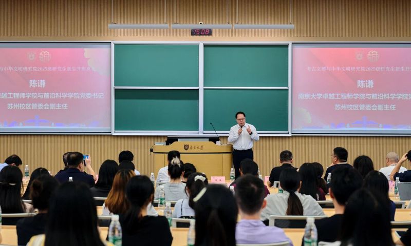 南京大学研究生院副院长、研究生院苏州校区办公室主任吴恺结合研究生培养规律,对新生提出三点具体要求。一是“秉持学术初心,锚定研究方向”。他指出,考古文博学科肩负着保存历史记忆、传承文化根脉的使命,要从细节做起,在实践中明晰研究方向。二是“拥抱跨学科交叉,创新研究方法”。希望新生主动打破学科边界,利用学校搭建的合作机制探索交叉研究。三是“兼顾学问与身心,筑牢成长根基”。他坦言,野外考古、实验室分析等科研工作充满挑战,学校将通过学业支撑、学工支持等渠道为同学们缓解压力。