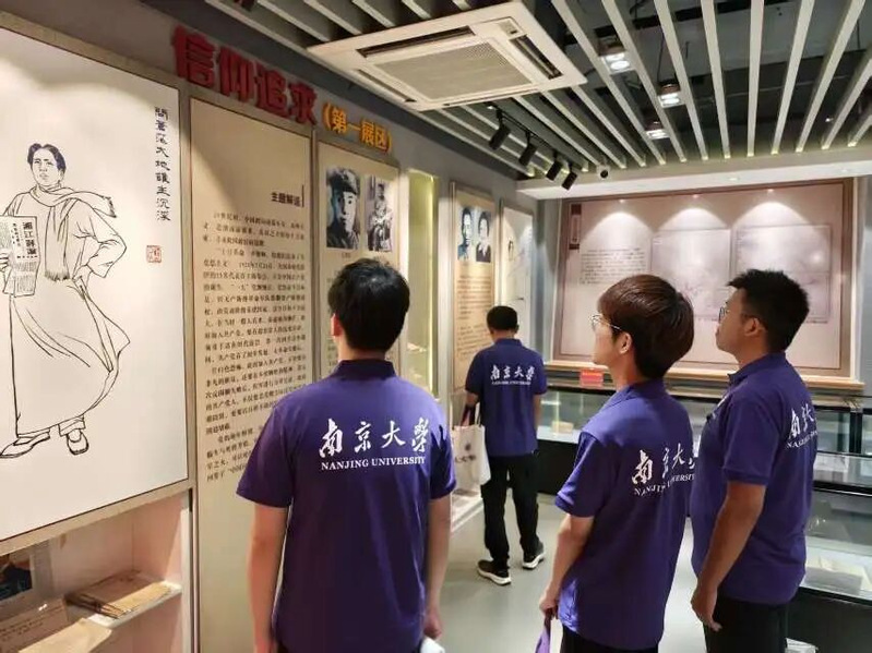 “党史馆不只讲‘大事’,更讲‘小人物’。”在三楼南京大学中共党史资料馆,学姐们强调党史馆建设的悠久历史,同时指出馆藏资料的特色在于它关注的是不同历史时期党员个体,引导大家关注那些泛黄信笺、朴素照片背后的个体生命——战争年代的党员、建设时期的先锋……