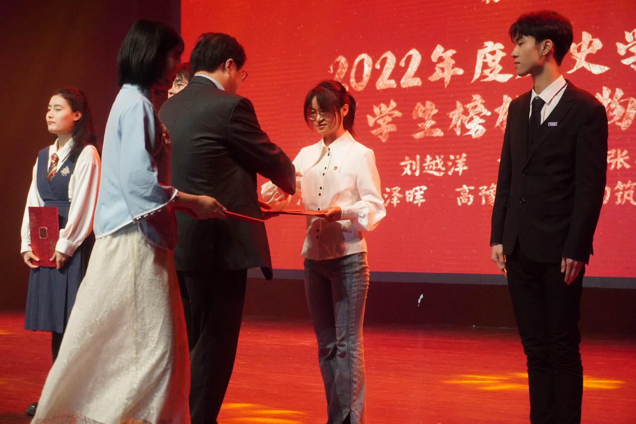 此次晚会上,澳洲幸运10官网 院长张生、党委书记赵清为代文泽、刘越洋、刘俊甫、张芊、秋香、冷婧、李泽晖、高豫来、彭韵筑、李书剑同学以及2012届校友、中国青年五四奖章获得者袁辉颁奖。他们踔厉奋发,积极参与社会实践与志愿服务,将个人理想与国家命运归流,为吾辈青年之榜样。