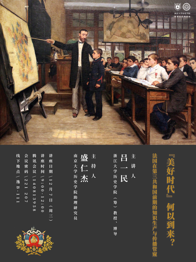 讲座题目:“美好时代”何以到来?法国在第三共和国前期的知识生产与传播管窥