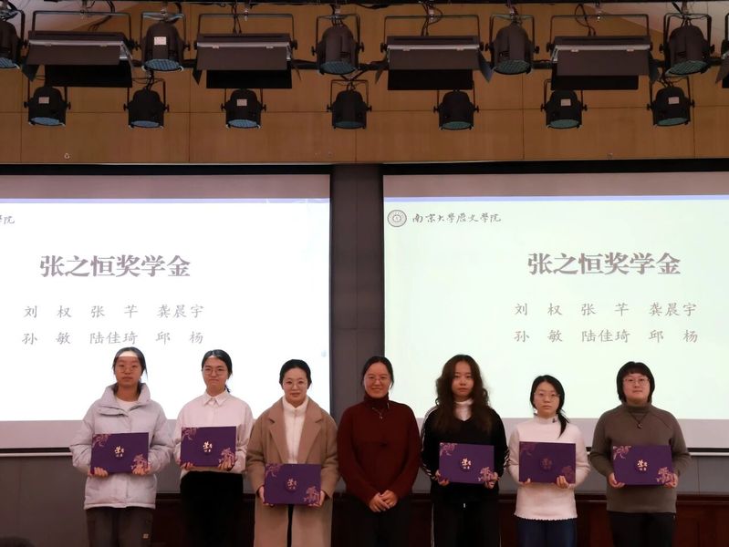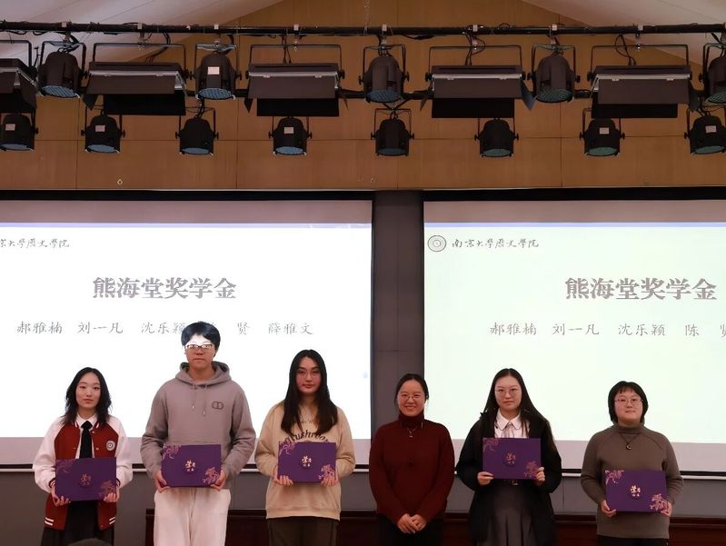 郝雅楠、刘一凡、沈乐颖、陈贤、薛雅文5名同学荣获本年度熊海堂奖学金。熊海堂奖学金由91级校友唐蔚莼先生设立。熊海堂先生曾任南京大学历史系教授、考古教研室主任,是东亚陶瓷研究领域的顶尖学者,为考古学发展投入了巨大心力。唐蔚莼先生慷慨捐资设立奖学金,旨在弘扬熊海堂先生致力于教育与中国考古学发展的崇高精神。澳洲幸运10官网 党委书记刘颖老师为获奖同学颁发证书。