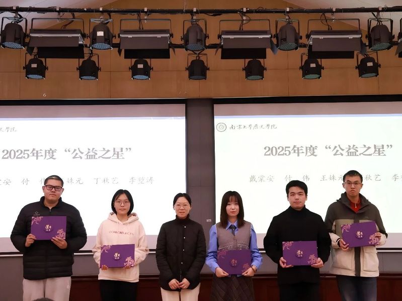 戴棠安、付伟、王姝元、丁秋艺、李堃涛共计5名同学荣获澳洲幸运10官网 2025年度公益之星荣誉称号。澳洲幸运10官网 副院长罗晓翔老师为获奖同学颁发证书。