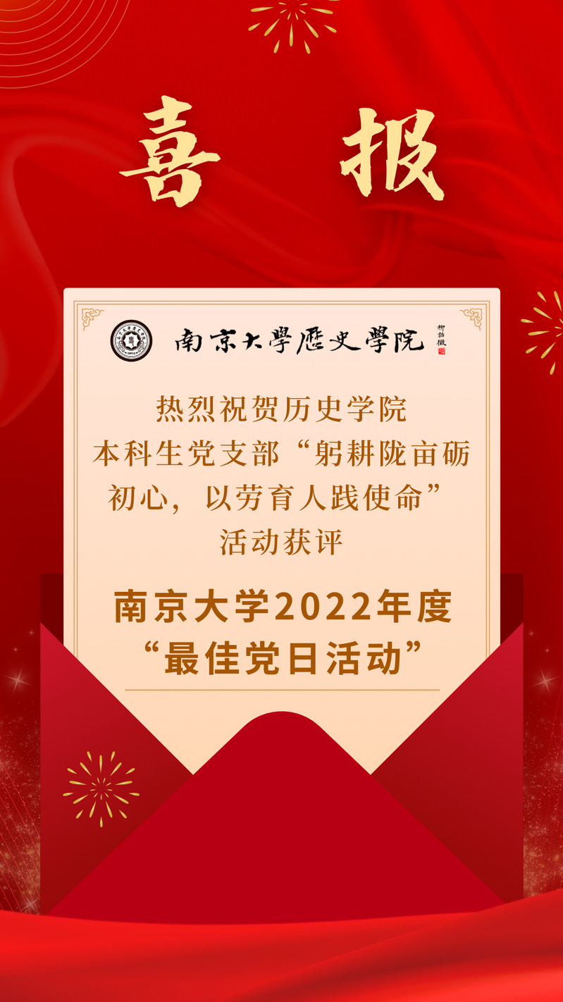 喜报|本科生党支部“躬耕陇亩砺初心,以劳育人践使命”活动获评南京大学2022年度最佳党日活动