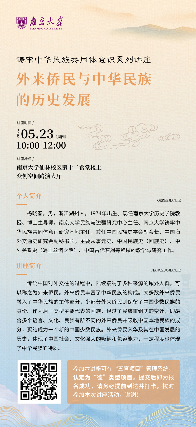 讲座预告 | 铸牢中华民族共同体意识系列讲座:外来侨民与中华民族的历史发展