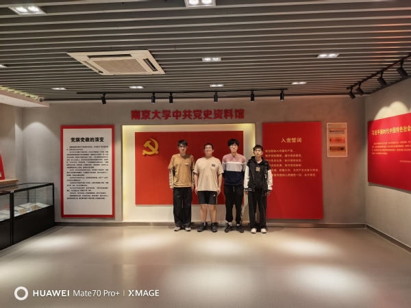2025年4月9日下午,南京大学2025年度春季学期入团积极分子培训班的4名同学参观南京大学中共党史资料馆。