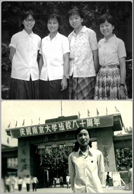 她插队第5年,以表现优异、能写稿子而被调入公社党委秘书办公室。1976年逢推荐上大学,经面试,据说很理想,抱着热火罐,以为大有希望,结果直到开学才得知公社团委书记等人早已被推荐上学去了,根本没自己的份儿!大失所望。而塞翁失马,焉知非福?那年她要是真成了工农兵学员,后来恢复高考考大学就没她什么事了!图为考上南京大学的她,青春洋溢。(照片摄于南大西南楼)