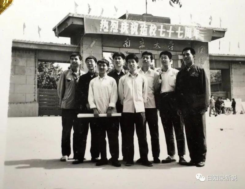 后排右二这位,1978年高考,自我感觉各门考得都还行,即使没把握的数学,估计也能及格。谁知拿到分数一看,数学才36.5分,与别人核对,发现有一道14分大题的求解步骤与他人不同,但他认为结果没错啊!那时居然可以申请核查试卷分数,于是他去县招办,提供证明后,在那儿花了一小时,把那道题又重新论证了一遍,证明自己答题没有错,顺便他又检查了别的答题,最后竟然给自己找回了15分!这对于他最终能考上南京大学,起了至关重要的作用。(照片摄于南京雨花台)