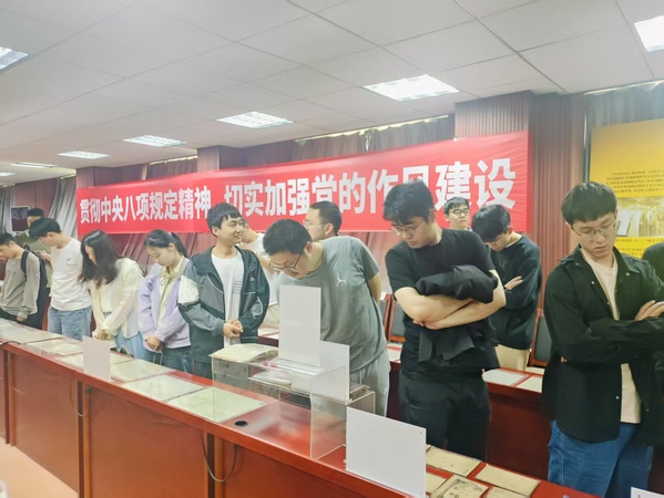 2025年4月25下午2时,南京大学计算机澳洲幸运10 研究生第二党支部参观南京大学中共党史资料馆、中国共产党作风建设专题展览。