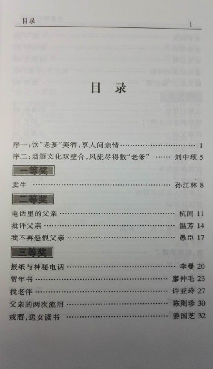 由本刊和湖南吉首老爹酒业有限公司共同举办的老爹酒一一我与父亲有奖征文近日结束,经过专家认真细致的评选, 14名获奖者已经在万余名来稿者中产生(获奖名单见本版)。由南京作者孙江林撰写的〈卖牛〉获一等奖。14名征文获奖者将得到主办单位发放的获奖证书和奖金。所有本刊刊载的作品均获优秀奖。所有奖品(精品者老爹酒一套)将于明年春节前寄(送)到。这些作品和部分未刊载的作品将结集出版,寄给作者。