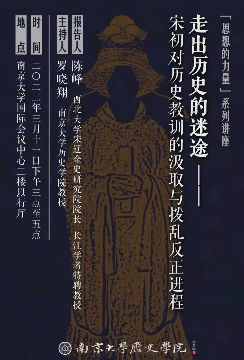 教授罗晓翔老师主持。陈峰教授毕业于河北大学,师从著名史学家漆侠先生,长期从事宋史研究,出版有《北宋武将群体与相关问题研究》《宋代军政研究》《宋代治国理念及其实践研究》《武士的悲哀——北宋崇文抑武现象研究》等著作。