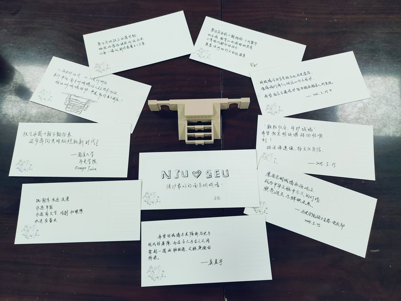 活动的最后,两个支部的党员共同参与了互动创作环节。大家在明信片上写下或是对南京、对明城墙的感悟、祝福,或是本次党支部共建获得的心得体会,并踊跃分享。