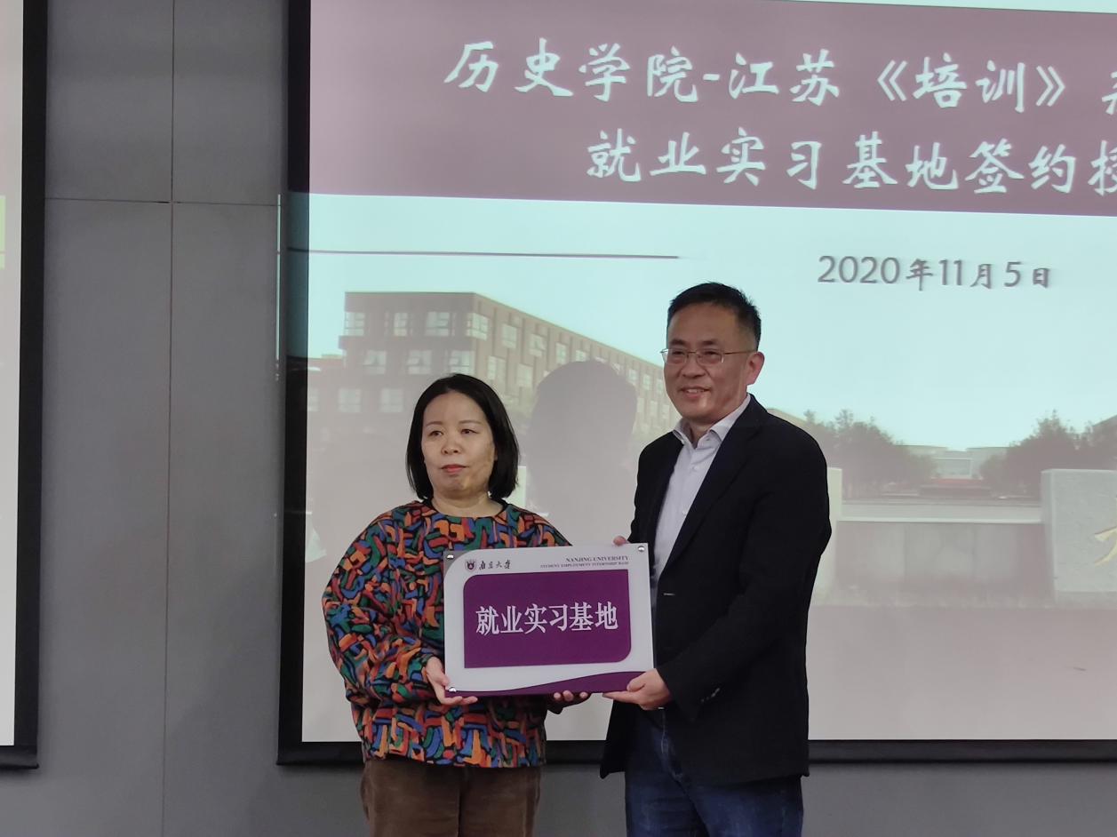 接下来,澳洲幸运10 党委副书记任玲玲与《培训》杂志主编朱伟正校友签约并进行就业实习基地授牌仪式。