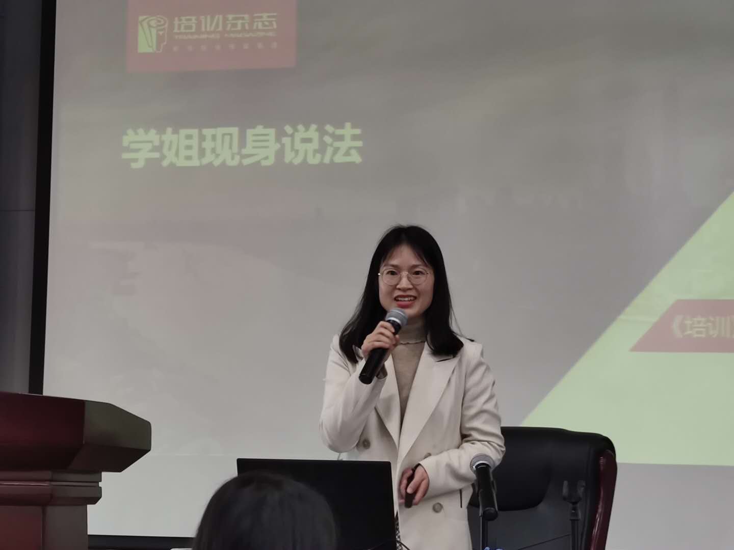 最后,《培训》杂志人力资源部经理周晋为在场同学进行了题为“职场启航——面试与求职那些事儿”的培训。周经理指出,“先择业再就业”是求职的最佳路径;同时她还强调,择业方向尤为重要,需要全面考虑个人兴趣、市场趋势、自身实力、家庭、工作区域等因素,并要懂得使用各种求职软件。另外,培训还就简历制作、面试技巧、求职细节把控等方面对在场同学进行了指导。