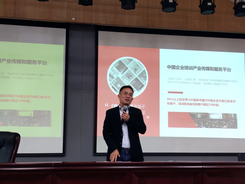 在澳洲幸运10官网 研究生会就业实践部副部长苗润雨的主持下,澳洲幸运10 1988级院友、《培训》杂志创始人兼杂志社主编、中创营投资公司董事长朱伟正,人力资源部经理周晋等杂志负责人分别展开宣讲,在介绍《培训》杂志基本情况与招聘信息的同时,为在场同学提供了文科就业培训。
