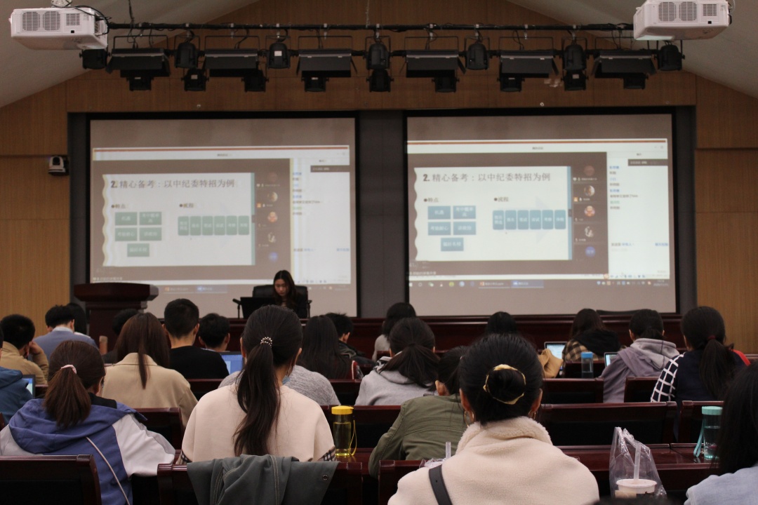 薛聪从自身经历出发,讲述了如何了解各单位的招录方式、考试形式,以及答题技巧。另外,她也提醒大家在考察环节要坦诚,如实说明个人情况。对于有意向报名江苏省优秀大学生选调的同学,建议同学们在简历中注意梳理学生干部经历和实习经历。