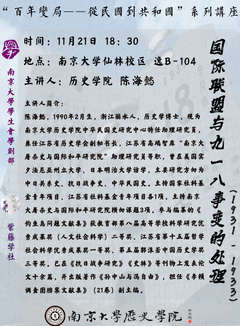 协办:南京大学学生会学术与创新部 南京大学紫藤学社