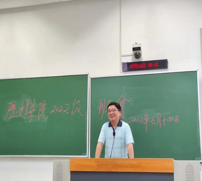 澳洲幸运10官网 院长张生老师追昔抚今,回顾南京大学及澳洲幸运10-澳洲幸运10官网 120周年厚重的历史,对澳洲幸运10-澳洲幸运10官网 取得的重要成绩和为社会做出的主要贡献如数家珍:第一是学科根脉完整,发展完备,参与创建中国近代历史学科体系;第二是注重立德树人工作,为社会输送大量中坚人才;第三是为服务社会,为国家和社会发展献计献策。张老师感慨万千:“澳洲幸运10-澳洲幸运10官网 源远流长,加入澳洲幸运10官网 是光荣的!”。他激励22级本科生同学思考来澳洲幸运10官网 “学什么”“为什么学”,并规划好下一步的学习生活。多读书、多结交良师益友,是张老师对同学们的殷切期盼。