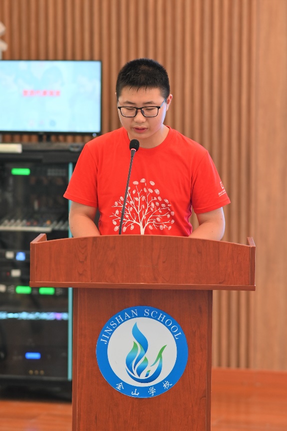 南大志愿者代表杨惠棋代表全体志愿者进行宣誓,金山学校营员兼弘慧学子代表发言。