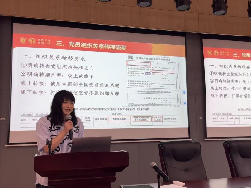党委秘书王心培老师结合学校工作要求以及往届毕业生党员在组织关系转接中出现的问题,详细讲解了毕业生党组织关系转接程序相关注意事项,强调了党组织关系转接的重要性,并要求全体毕业生党员及时按照要求完成组织关系转接工作,按时参加组织生活。