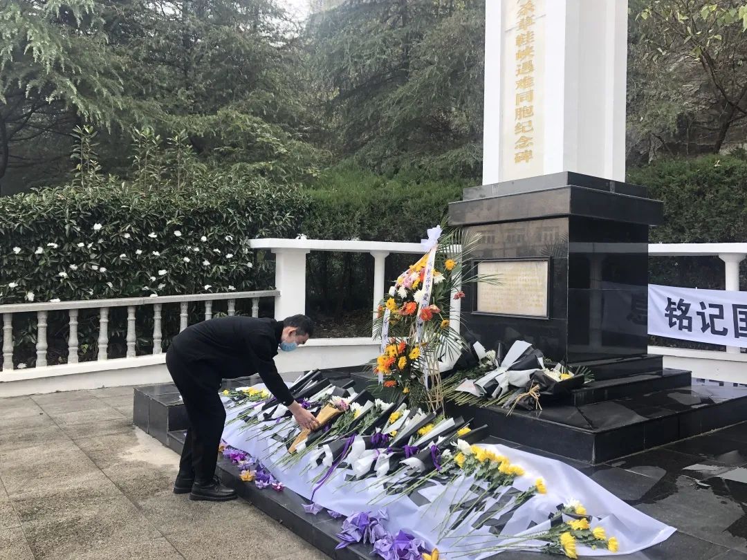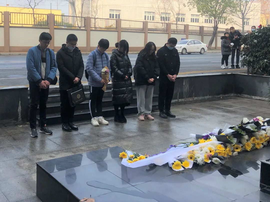 同学们在草鞋峡丛葬地纪念碑、中山码头丛葬地纪念碑、挹江门丛葬地纪念碑、北极阁丛葬地纪念碑、太平门纪念地纪念碑、五台山丛葬地纪念碑、汉中门外丛葬地纪念碑,一同为遇难同胞献花并默哀。