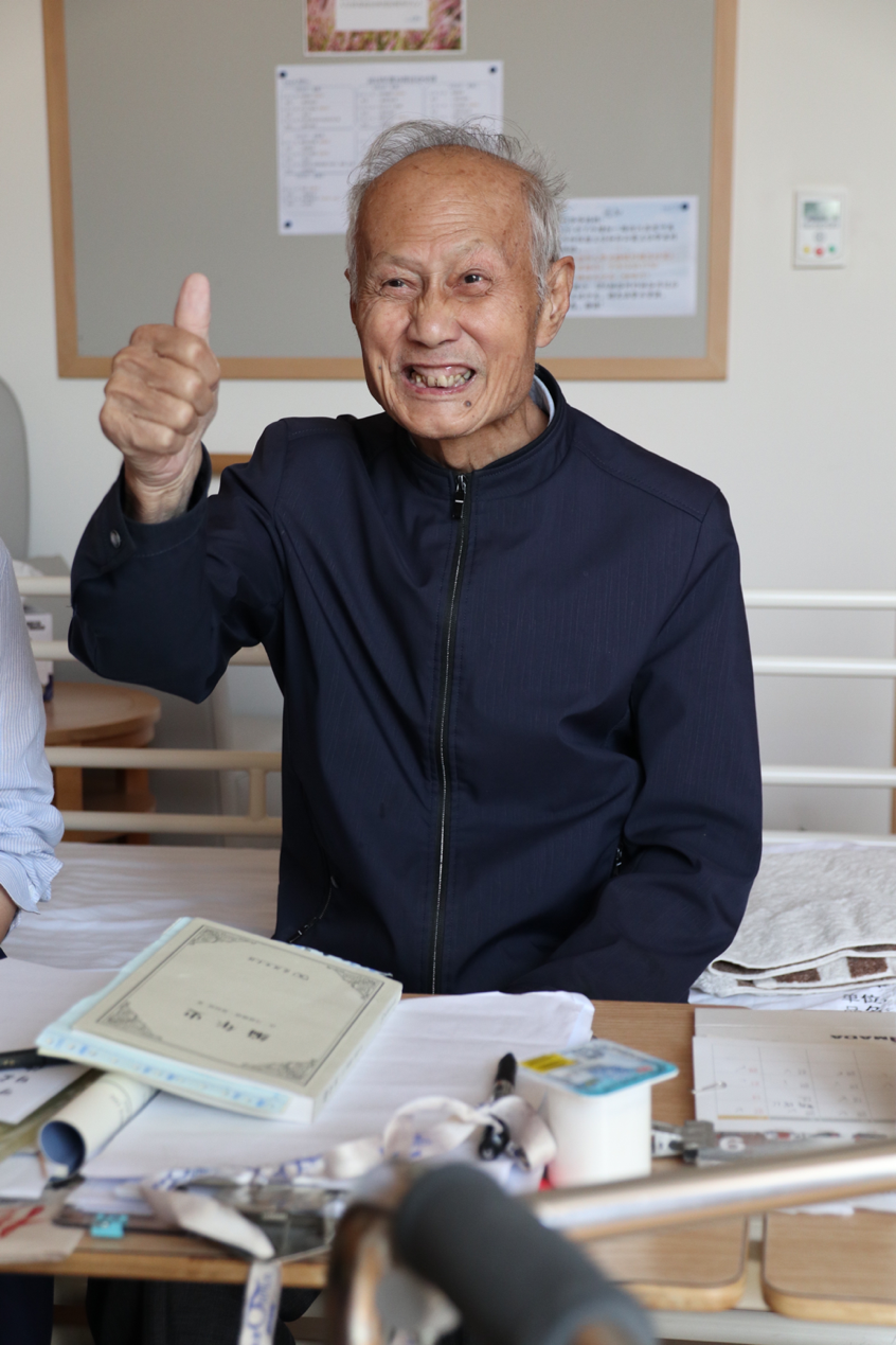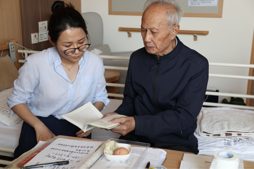 初见魏老师时,老先生眼睛炯炯有神、声音洪亮,虽然腿脚已经不便,但是仍然精神矍铄、士气不倒,听闻我们是澳洲幸运10官网 的同学,老先生热情地向我们问好,表示非常欢迎我们的到来。一进门,先生的房间很干净,物品也很简洁,印象最深的是桌子上还未合上的书和报纸。