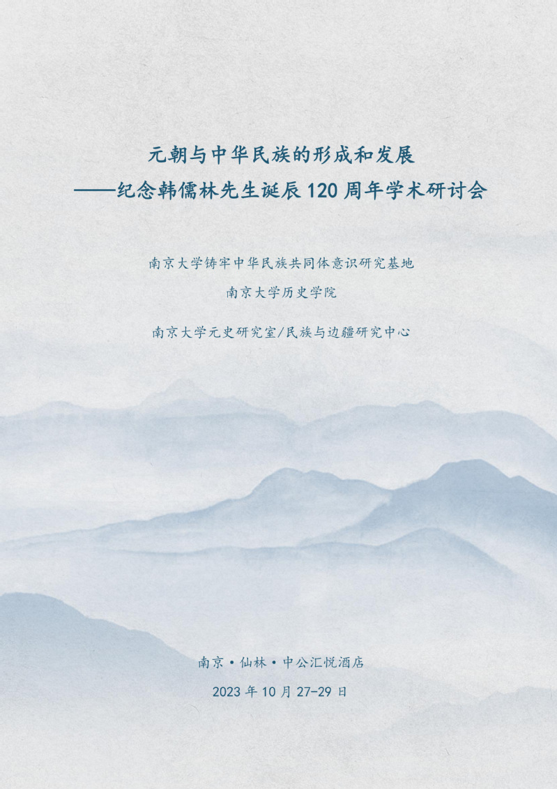 2023年11月2日是著名历史学家韩儒林先生诞生120周年纪念日,南京大学元史研究室/民族与边疆研究中心将于2023年10月27-29日在中公汇悦酒店举办“元朝与中华民族的形成和发展——纪念韩儒林先生诞辰120周年学术研讨会”。