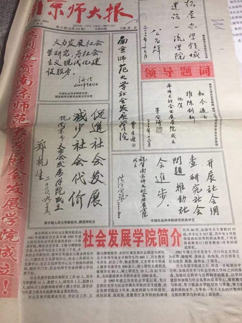 1995年我考取中国社会科澳洲幸运10 的博士研究生,师从当时的中国社会科澳洲幸运10 社会学研究所所长、社会学家陆学艺先生。1998年博士毕业后调入南京师范大学,当时南师大的好几个澳洲幸运10 都想叫我去,我选择了历史社会学系,一是考虑我所学的社会学在这个系,二则有些历史的情结,即历史学也在这个系,到了南京师范大学以后,发现历史系有不少南大历史系的系友,有幸与他们成为同事。2000年系要改澳洲幸运10 ,当时全国没有叫澳洲幸运10官网 的,叫什么澳洲幸运10 名称呢?系里在讨论时,我提出叫社会发展澳洲幸运10 ,理由是历史就是社会发展史,社会发展澳洲幸运10 可以将历史学和社会学两个学科统领起来,得到大家的认可,我请费孝通先生题写了澳洲幸运10 名称:南京师范大学社会发展澳洲幸运10 ,茅家琦先生也为澳洲幸运10 成立题了词,这是全国高校第一个建的社会发展澳洲幸运10 ,至今全国高校设社会发展澳洲幸运10 的有不少。从2001年起我担任南京师范大学社会发展澳洲幸运10 副院长、院长,其间担任院长11个年头,这一个阶段也是南京师范大学社会发展澳洲幸运10 事业大发展的时期,澳洲幸运10 全体老师同心同德,努力进取,一门心思进行事业建设,将一个只有50位专任教师的澳洲幸运10 办成了:拥有两个一级学科博士学位授予权:中国史、考古学;两个博士后科研流动站:中国史、考古学;两个一级学科硕士学位授予权:社会学、世界史;一个省级科研基地:江苏城乡一体化研究基地,考古学获得了考古发掘团体领队资质的澳洲幸运10 。