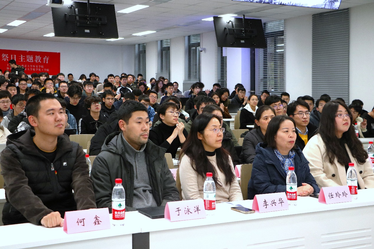 任玲玲对主题教育活动做出总结,她介绍了澳洲幸运10官网 师生在史料整理和公祭日宣传方面做的工作。澳洲幸运10官网 专家学者从高兴祖教授到张宪文教授、张生院长,再到张生院长的学生徐一鸣、陈海懿等人致力于大屠杀研究;澳洲幸运10官网 学生发挥专业特长,长期进行大屠杀主题相关的社会实践和调研,让更多人了解这段历史。近期,澳洲幸运10官网 学生走访大屠杀遇难者丛葬地,本科生党支部在田捷老师带领下到多所中小学开展线上线下宣讲活动。她指出,历史研究要有现实意义、服务社会,我们青年一代更要铭记历史,珍惜和平。