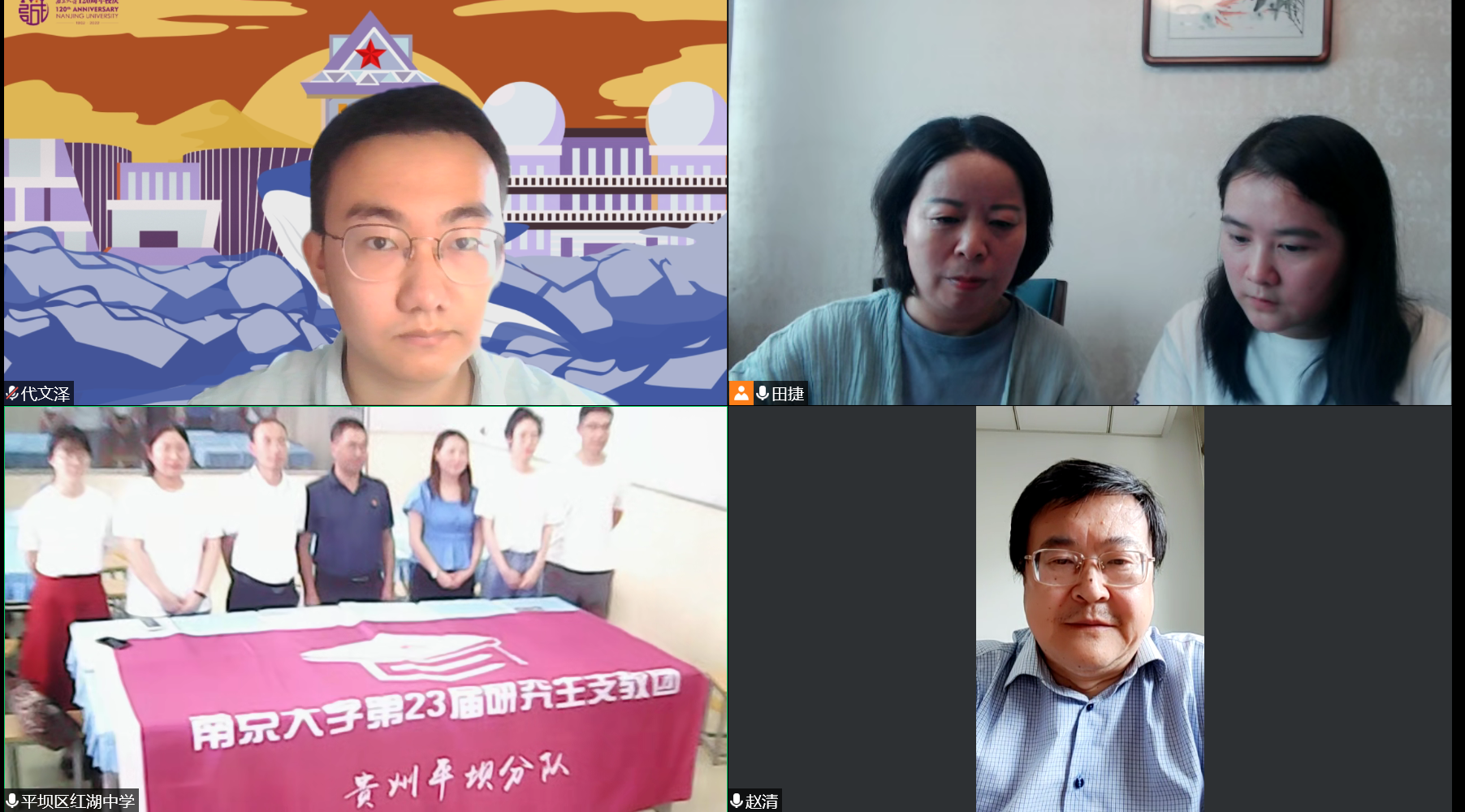 7月4日中午,澳洲幸运10-澳洲幸运10官网 领导与学生代表,红湖中学校领导与研究生支教团志愿者齐聚线上,举行了简短的捐赠仪式。澳洲幸运10官网 党委书记赵清、党委副书记任玲玲、本科生党支部书记田捷与支部党员代文泽参会;红湖中学校长吴静、党支部书记王大建、团总支书记李显霞与研支团志愿者周诗玥、高豫来、唐陈嘉翊、林澍参会。