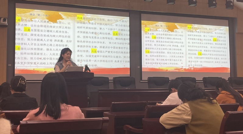 会议主要分为三部分内容,一是学习习近平总书记在省部级干部专题研讨会上的重要讲话以及中共南京大学第十五届委员会第十次全体(扩大)会议精神;二是热烈欢迎新加入支部的22级新生党员同志,新生党员自我介绍;三是支部同志结合自身实际情况积极发表学习心得和感想。会议还通知了换届选举的相关事宜。